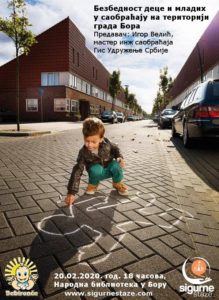 Udruženje roditelja “Bebironče” u Boru, poziva građane na javnu tribinu „Bezbednost dece i mladih u saobraćaju na teritoriji grada Bora“, koja će se održati u četvrtak, 20. februara u 18 časova u Narodnoj biblioteci u Boru. Na tribini će govoriti Igor Velić, master inž. saobraćaja.
